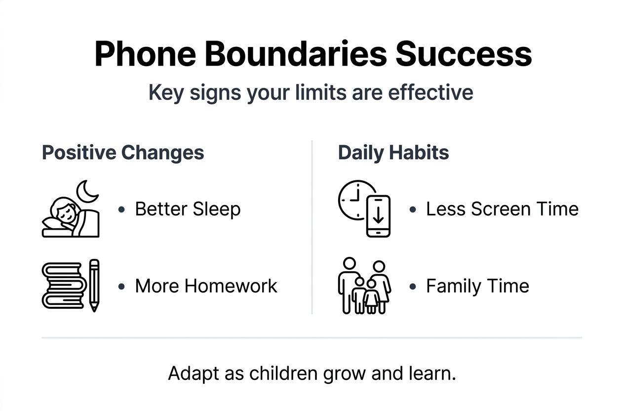 Signs of success include measurably reduced daily screen time, improved sleep patterns, better homework completion, and more engaged family interactions. Track these markers over weeks, not days. Real change takes time.