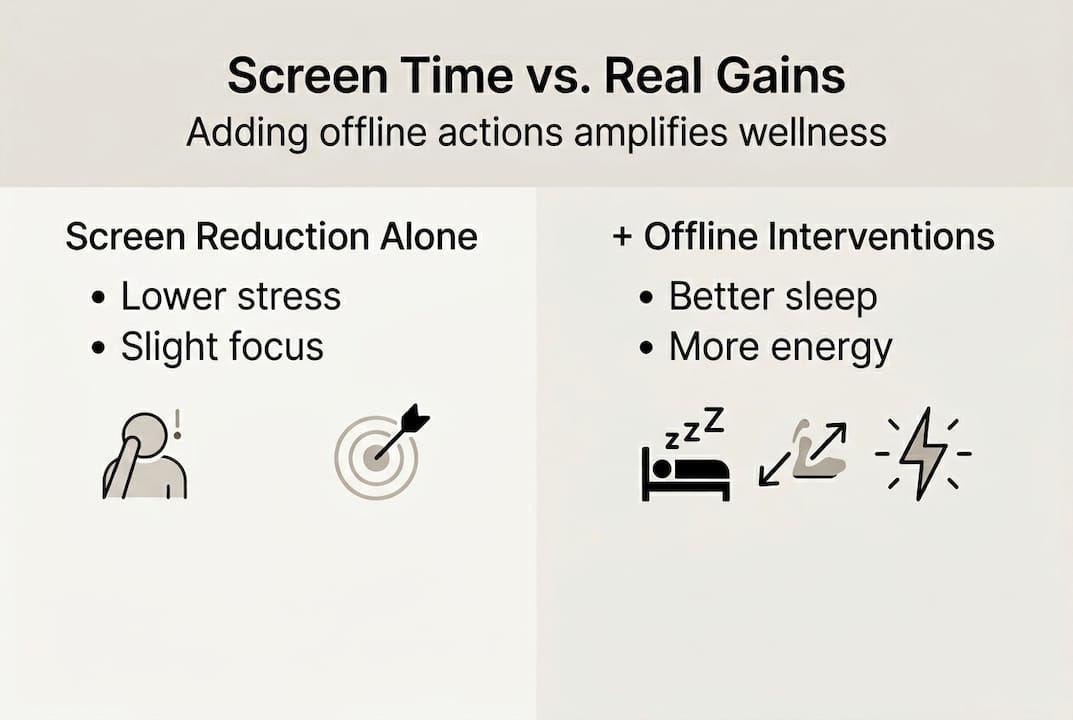 " The biggest benefit comes from pairing intentional offline activities with screen reduction, not from abstaining alone. "