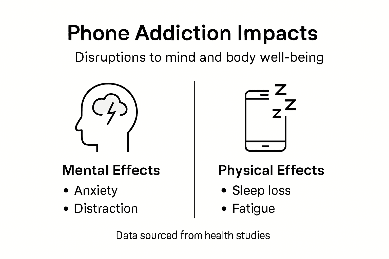Phone addiction can lead to cognitive disruptions, emotional regulation challenges, heightened anxiety, and increased depressive symptoms, compromising overall mental well-being.