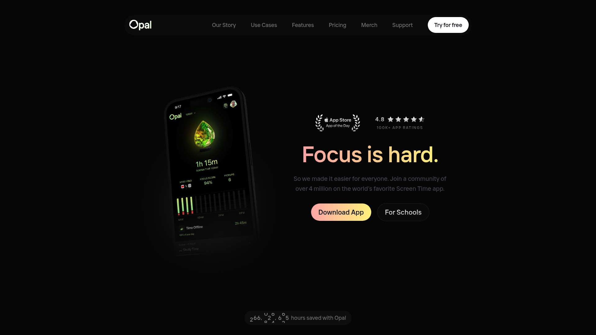 Opal is a screen time management app built to help users focus and reduce digital distraction. The app runs on iPhone, Mac, and Android and combines tracking with active blocking to change device habits. For health conscious professionals in Europe who want measurable gains in clarity and productivity, Opal delivers a clear set of tools and a reported average time saved of 1h 23m daily. It is practical for individuals, students, and teams but some advanced tools sit behind paid plans.