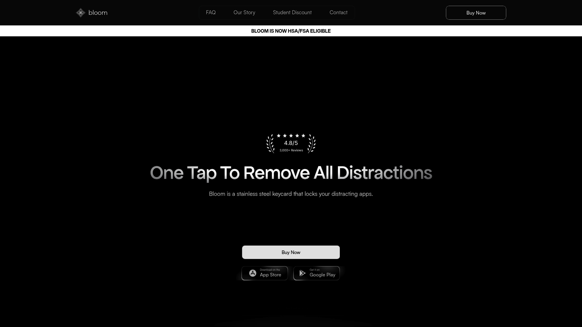 Bloom is a stainless steel physical keycard that locks distracting apps and websites with a simple tap, giving families an outside the phone barrier to reduce screen time and promote focused routines.