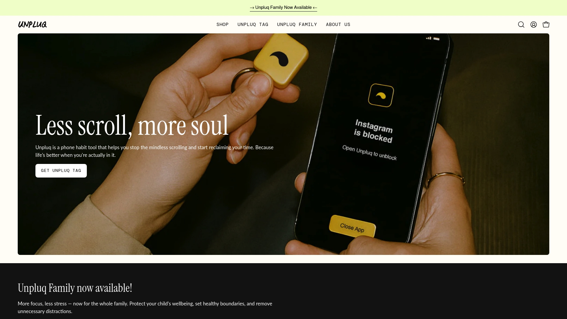 Unpluq is sold as a bundle for $79 which includes the Unpluq Tag and a one year premium subscription for the app.