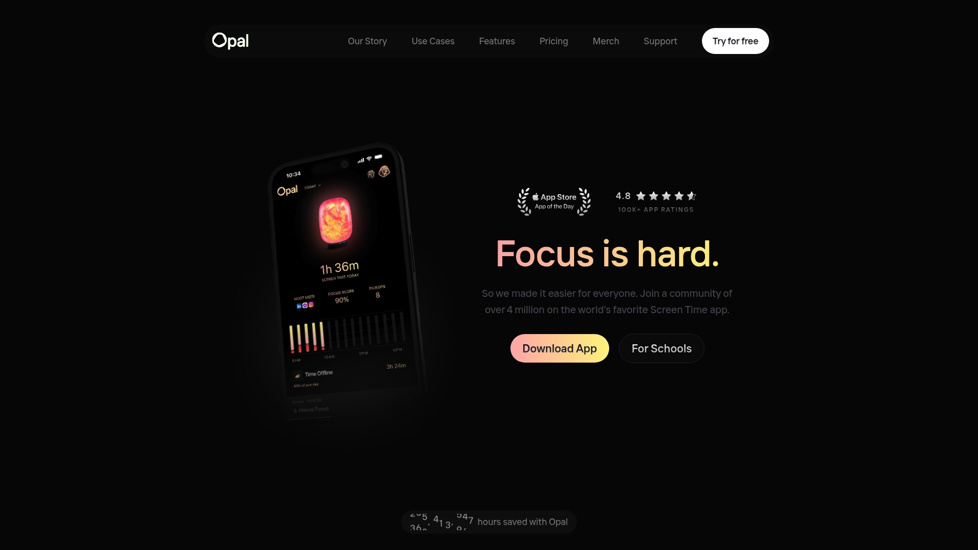 Opal is a screen time app that helps parents and individuals reduce distractions and improve mental health through measurable focus tools. It pairs simple blocking with Focus Score tracking so you can see real progress in attention and screen habit change.