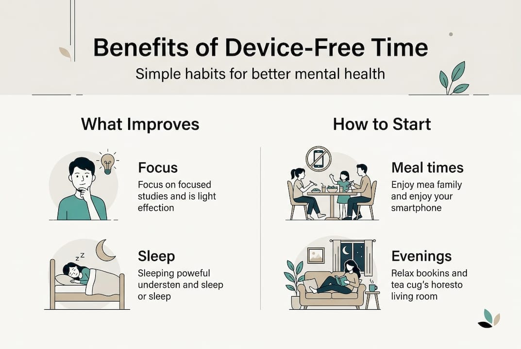You've probably heard endless warnings about kids and screens, but here's what often gets missed: reducing device time benefits everyone, not just children. Recent randomized controlled trials show that cutting smartphone screen time improves mental health across all age groups, lowering stress and boosting sleep quality. For health-conscious professionals juggling work demands and parents managing family dynamics, promoting device-free periods offers a practical pathway to better well-being. This guide explains the science behind these benefits and provides actionable strategies to make device-free time work in your busy life.
